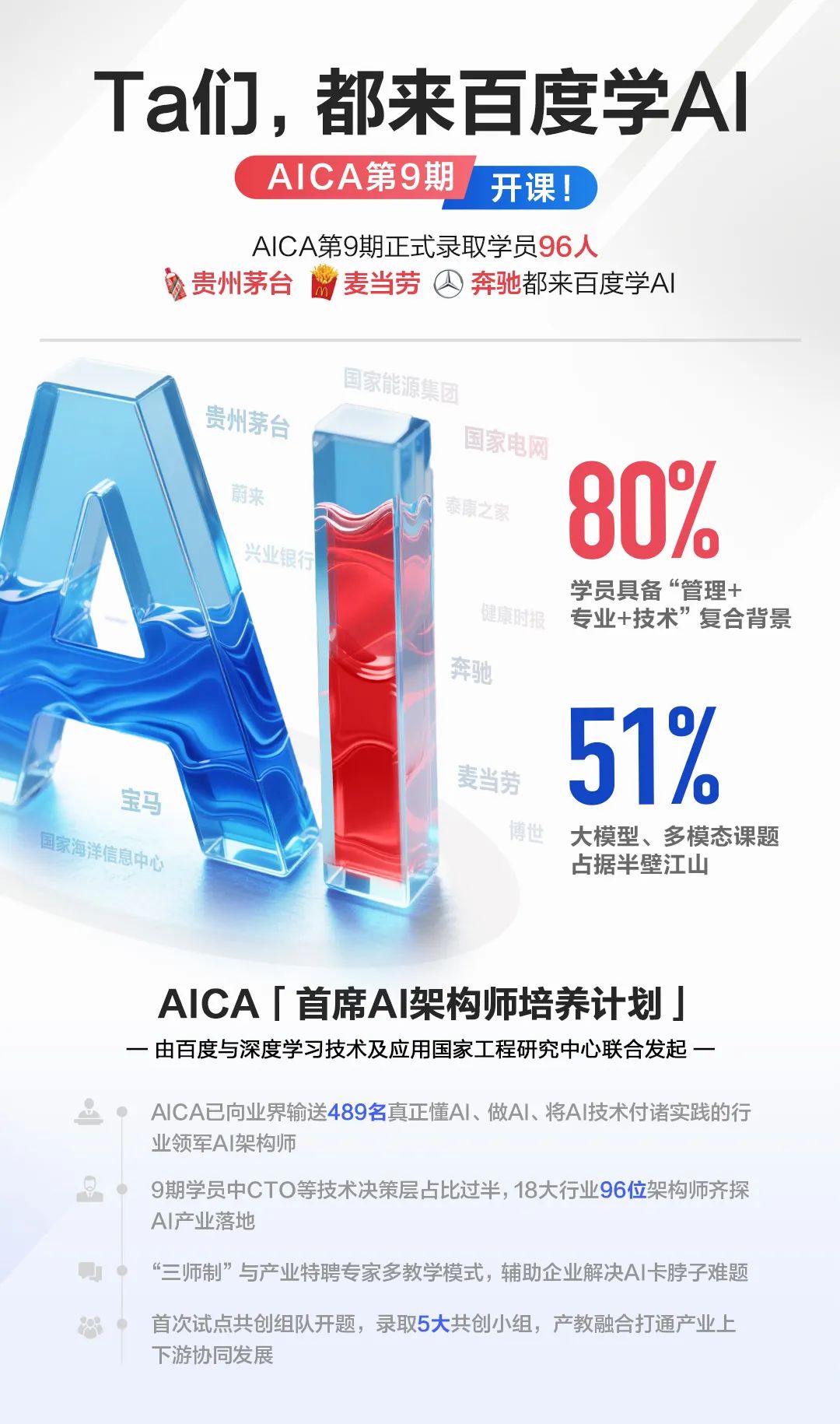 8月15日,由百度与深度学习技艺及运用国度工程盘问中心调解发起的AICA首席AI架构师培养操办在北京举办第九期开学仪式。